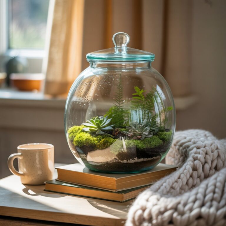 There’s something magical about a tiny world living inside glass—soft moss, sculptural branches, maybe a fern frond or two. Whether you use a traditional terrarium container or a vintage-style glass cloche, this project is beginner-friendly, affordable, and endlessly customizable.