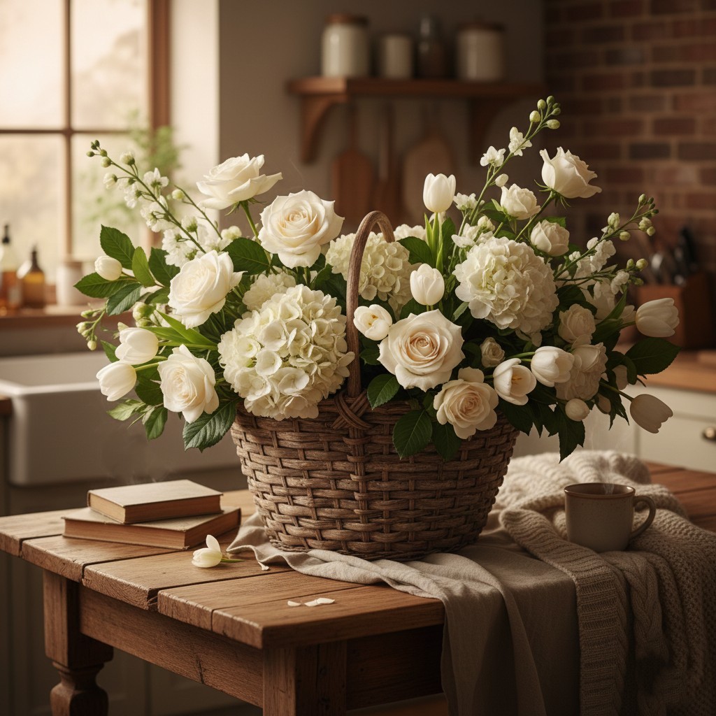 - Let stems spill over the basket edge for a casual, gathered look.