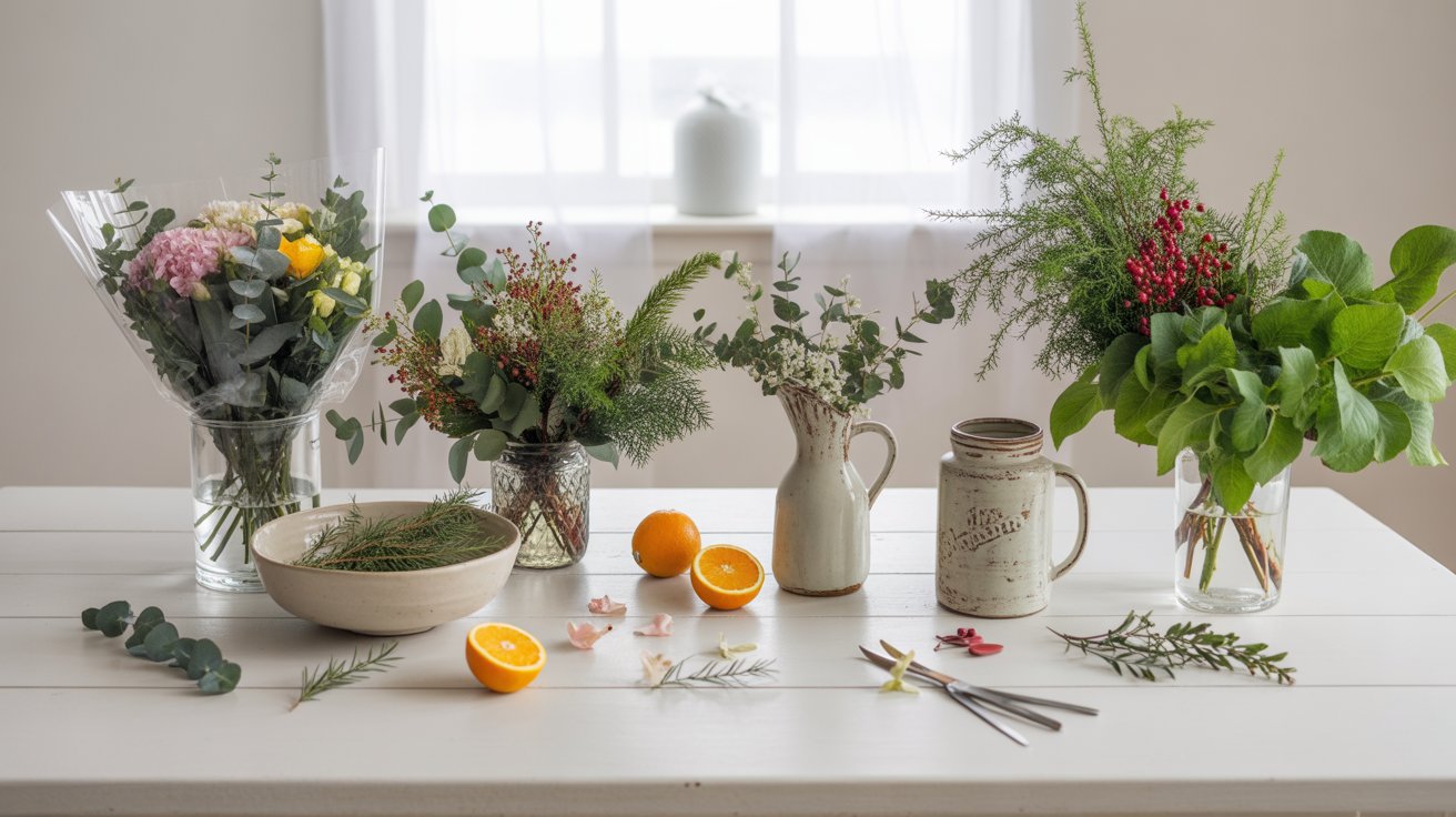 - Add eucalyptus or thin twigs for texture.