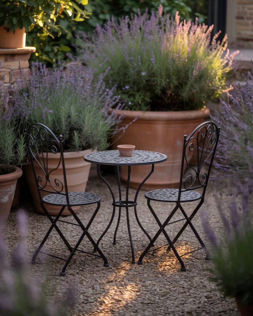 A bistro table, a slim bench against a fence, or even a single comfortable chair tucked among plants can transform the space into a retreat.