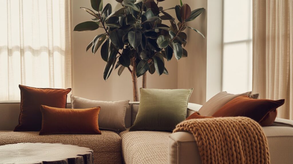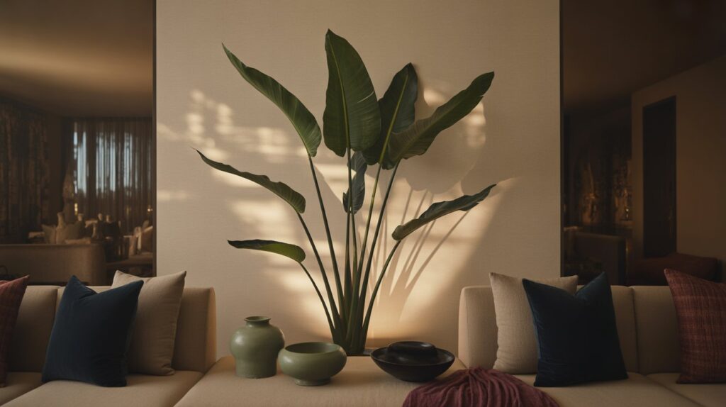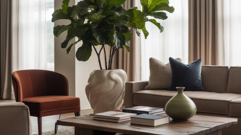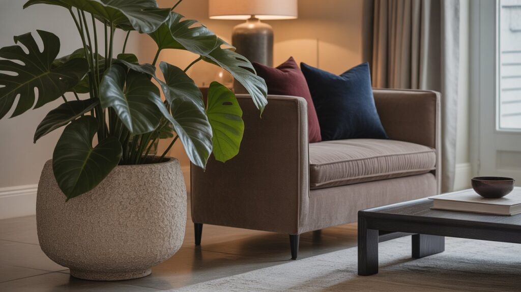Large plants shine best when the surrounding environment feels intentionally layered.